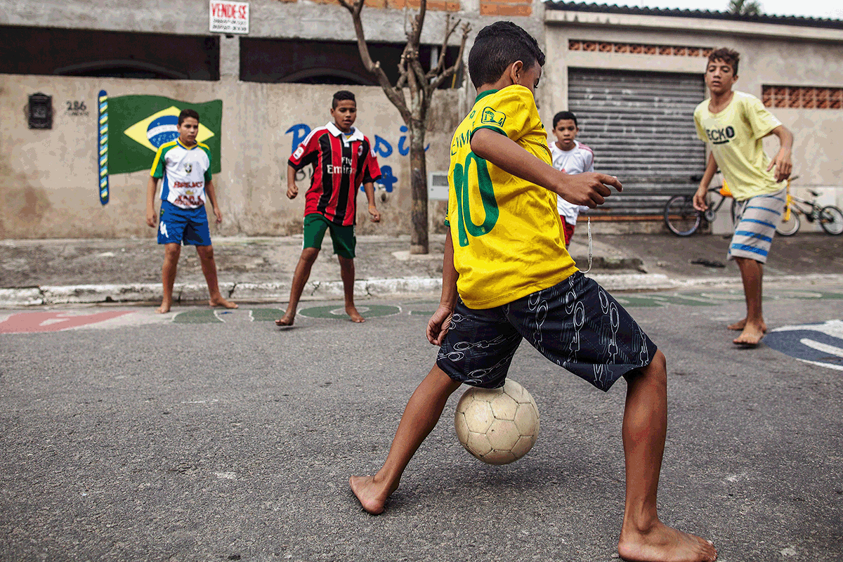 PIB; Brasil; crianças jogando bola (Victor Moriyama / Correspondente/Getty Images)