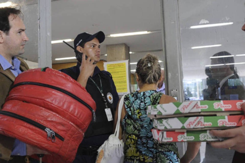 Manifestantes levam pizzas ao Ministério da Saúde: em agosto, a pasta informou que não havia prazo para que a regulamentação ficasse pronta (Elza Fiúza/ABr)