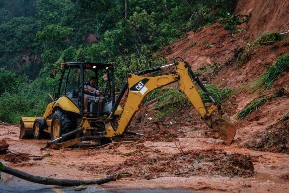 Máquina da prefeitura desbloqueia via após fortes chuvas em Maceió. 27/05/2017 Divulgação/Secom Maceió (Secom Maceió/Divulgação)