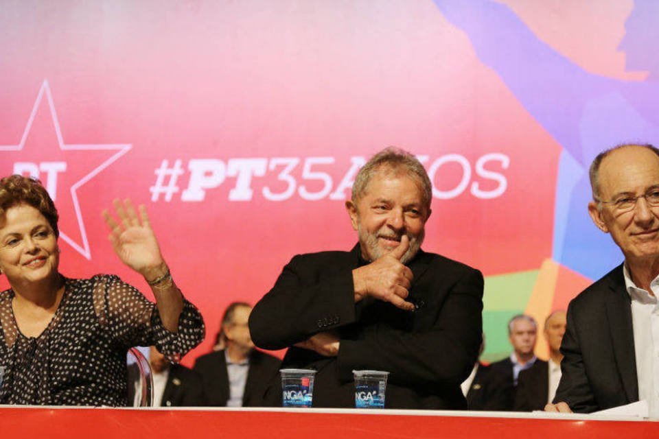 A presidente Dilma Rousseff, o ex-presidente Luiz Inácio Lula da Silva (C) e o presidente do PT, Rui Falcão (Ricardo Stuckert/Instituto Lula/Fotos Públicas)