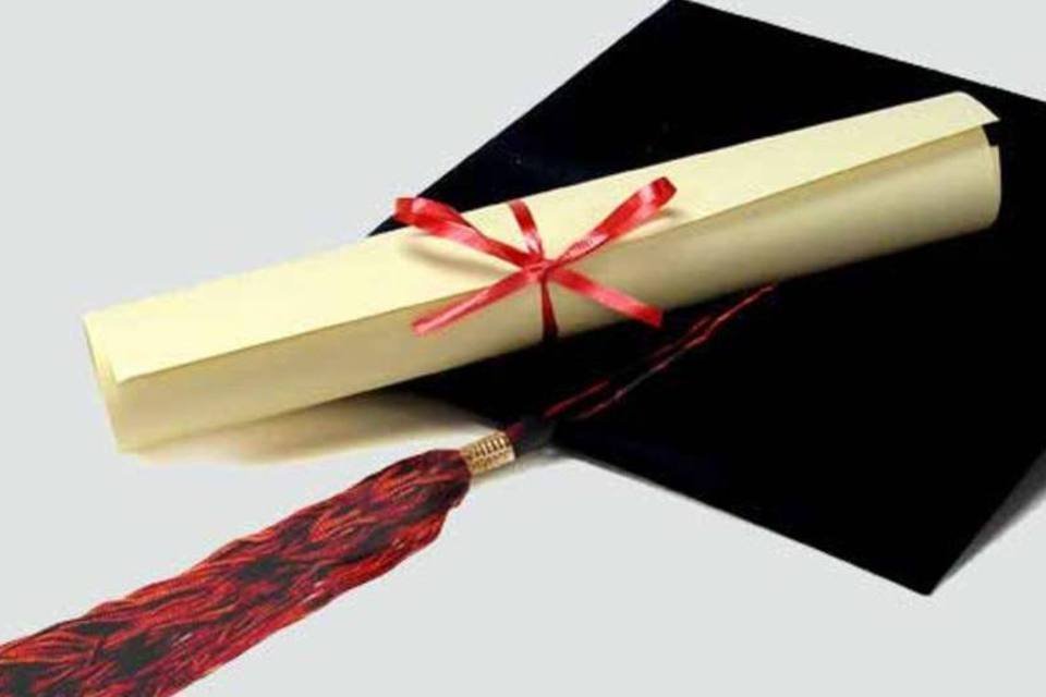 Diploma e chapéu sobre fundo cinza