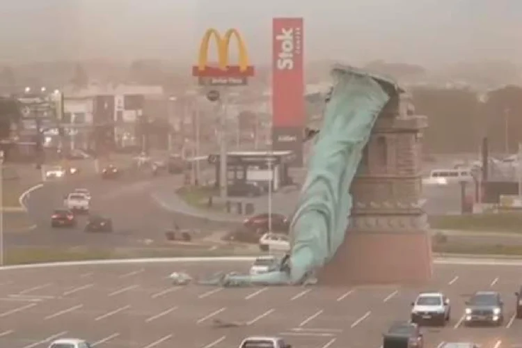 Um monumento que replica a Estátua da Liberdade desabou durante o temporal que atinge Guaíba, na Região Metropolitana de Porto Alegre, nesta segunda-feira, 15. A escultura ficava em frente à loja da rede varejista Havan.