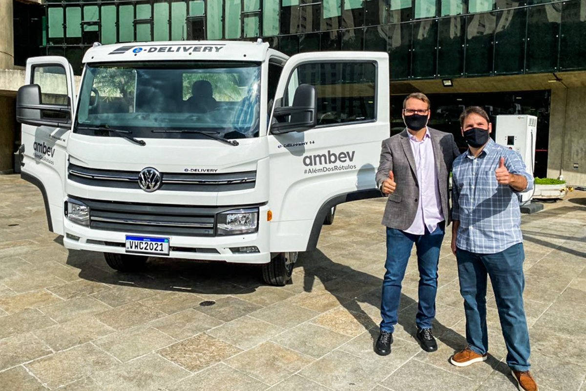 E, rumo a essa missão, a Ambev alcança mais um marco histórico no Brasil: pela primeira vez utilizaremos um caminhão 100% elétrico, com zero emissão de gases nocivos (carbono, NOX e micropartículas), em nossas operações logísticas pelas ruas, avenidas e estradas do país. O modelo? Um e-Delivery 14 toneladas 6x2, brasileiro.