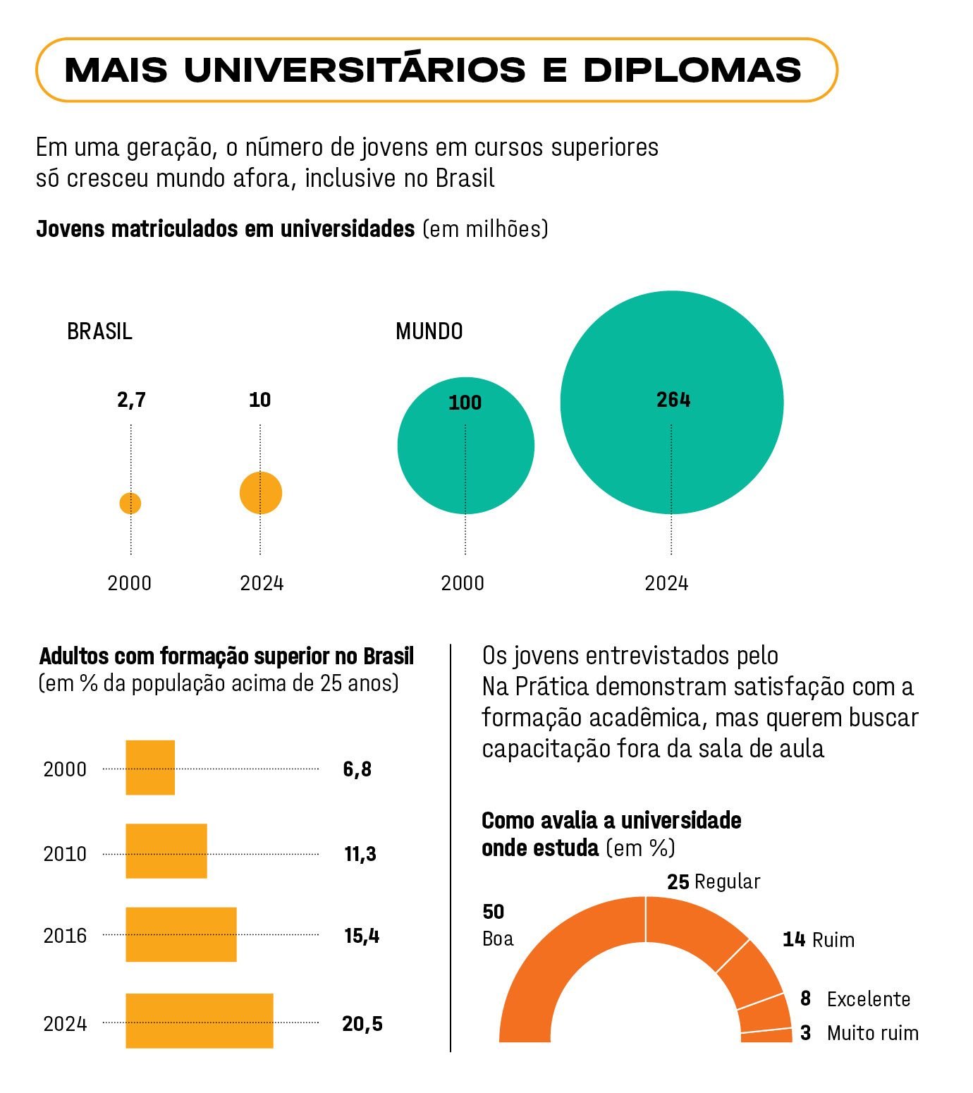 É nesse contexto que entra a pesquisa inédita EXAME/Na Prática, da instituição filantrópica ligada ao BTG Pactual. O levantamento ouviu 251 universitários e revela um dado central: os jovens não rejeitam o ensino superior — eles querem que ele se transforme.