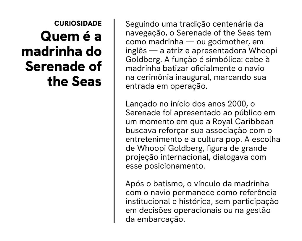 Na prática, a mudança encurta a jornada do passageiro e amplia o público potencial na região. O Serenade of the Seas, navio da classe Radiance, foi escalado para essa operação por seu porte intermediário, que permite operar em portos menores do Caribe Sul sem perder capacidade para atender famílias, casais e grupos multigeracionais.