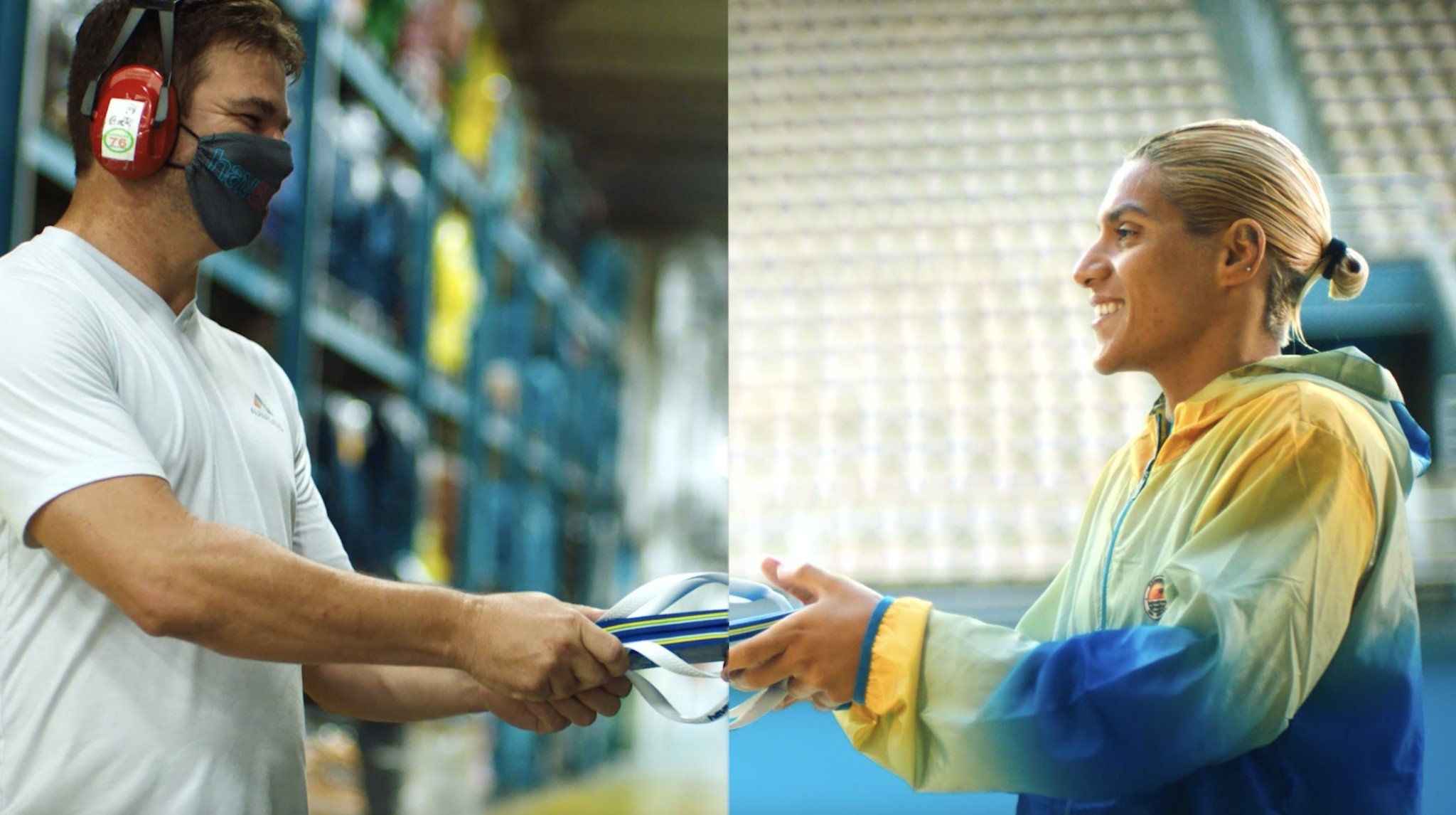 O filme retrata os processos de produção dos produtos, desde o corte dos moldes, passando pela aplicação da bandeirinha até a finalização. “As Havaianas não apenas fazem parte do uniforme oficial dos nossos atletas na abertura, mas também do uniforme de todo e qualquer brasileiro. E é justamente isso que queremos mostrar com esses filmes. De certa forma, o país inteiro se verá representado pelos chinelos que estarão nos pés das delegações brasileiras durante a abertura de Tóquio”, diz Fernando Bartolo, diretor de criação da campanha.
