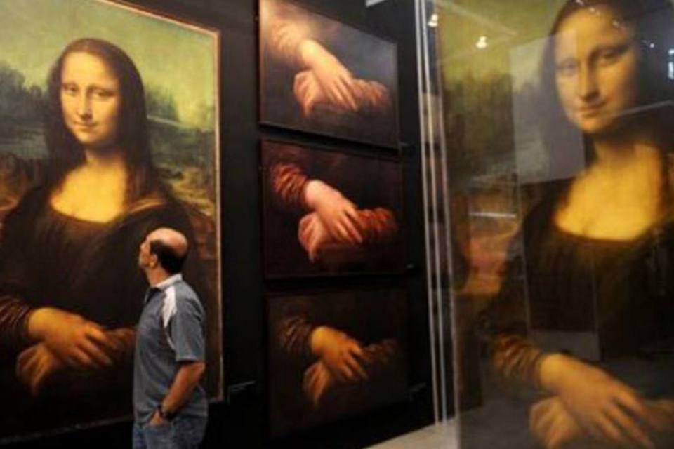 Reproduções da Monalisa expostas em Médelin, Colômbia: quadro encontrado no Prado precisou ser restaurado (Raul Arboleda/AFP)