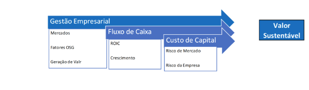 Se levarmos esse raciocínio para a realidade das empresas, podemos imaginar que a gestão empresarial precisa estar bem inserida em seus mercados de atuação, trabalhando para gerar valor levando em consideração os fatores OSG. Um valor sustentável será gerado quando o retorno obtido sobre o capital investido ficar consistentemente acima do custo desse capital.