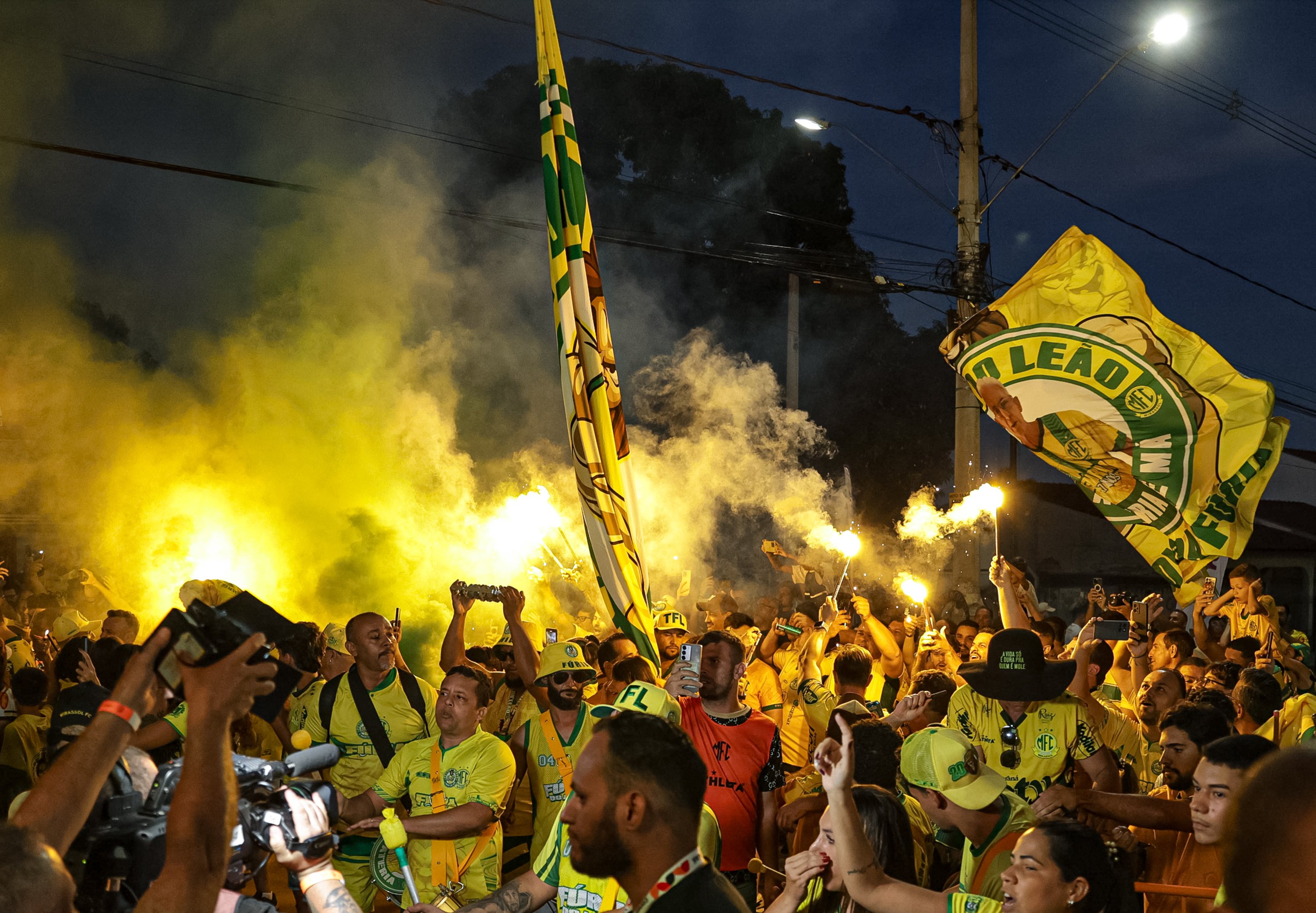 Torcida do Mirassol faz festa fora do estádio Maião antes de partida contra o Palmeiras (Ranier Moura/Sports Press Photo/Getty Images)