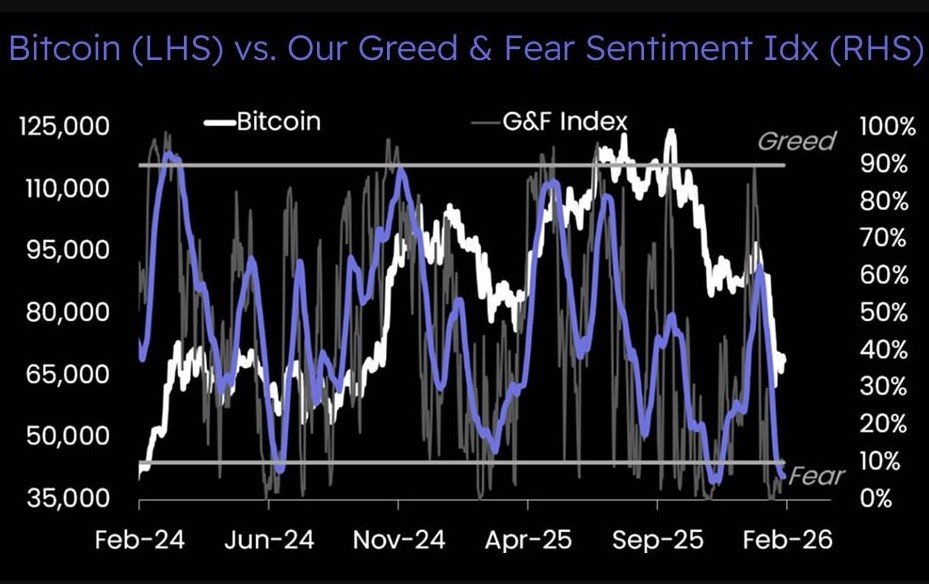Isso não descarta mais uma liquidação pontual para baixo, mas aumenta as chances de um rali de alívio antes que qualquer quebra sustentada de baixa se consolide.