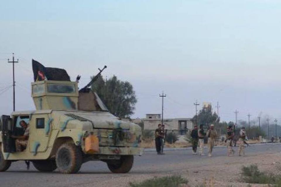 Forças ligadas ao governo iraquiano em estrada durante operação contra EI: a fonte acrescentou que sete membros da Polícia Federal morreram e outros quatro ficaram feridos em choques com extremistas do EI (Younis Al Bayati/AFP)