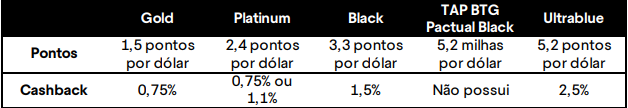 Nesse período, os clientes acumulam 50% a mais no valor de conversão de pontos ou cashback em suas transações no exterior, após o pagamento integral da fatura, conforme abaixo: