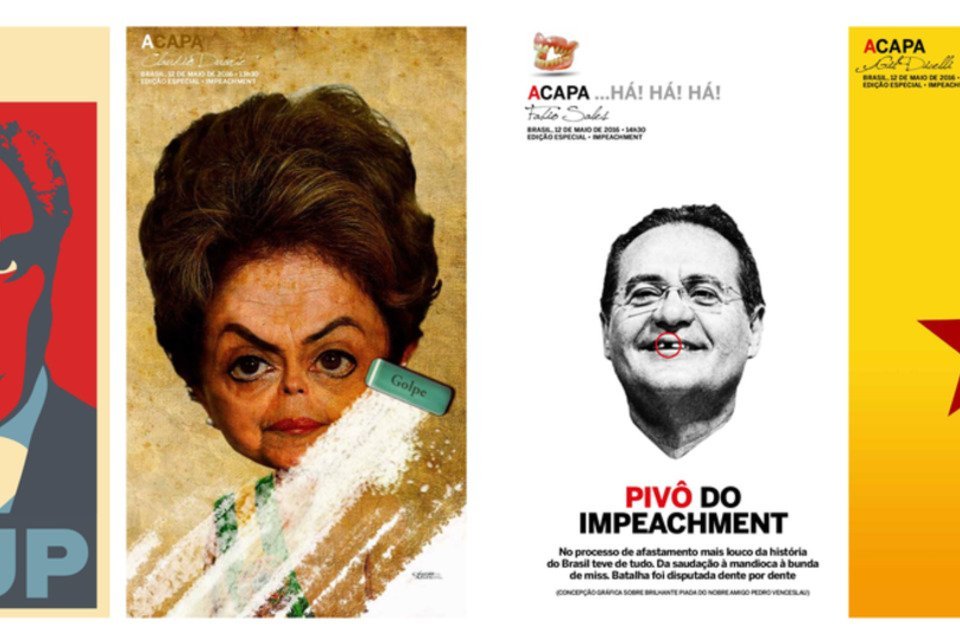 Uma seleção de 19 designers e ilustradores do País recebeu – e topou − o desafio de produzir suas capas de jornal dos sonhos, com absoluta liberdade de criação, sobre o 12 de maio de 2016, o dia da abertura do processo de impeachment, quando o Senado afastou a Presidente Dilma Rousseff.