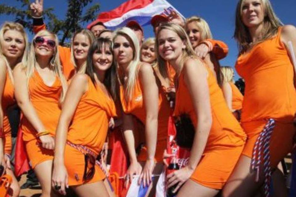 Torcedoras holandesas: vestidos seriam parte de uma campanha publicitária de uma empresa não patrocinadora da Copa do Mundo. (Getty Images)