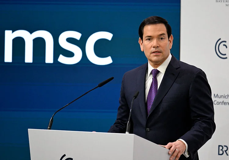 Marco Rubio, secretário de Estado dos Estados Unidos: durante discurso na Conferência de Segurança de Munique, onde defendeu limites ao apoio americano e cobrou maior protagonismo europeu na defesa (THOMAS KIENZLE/Getty Images)