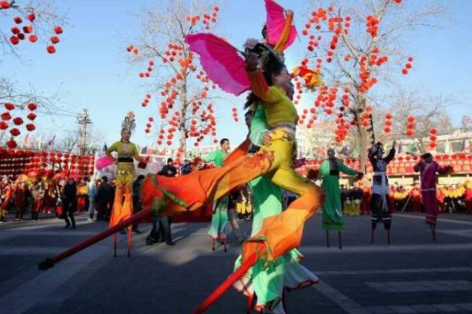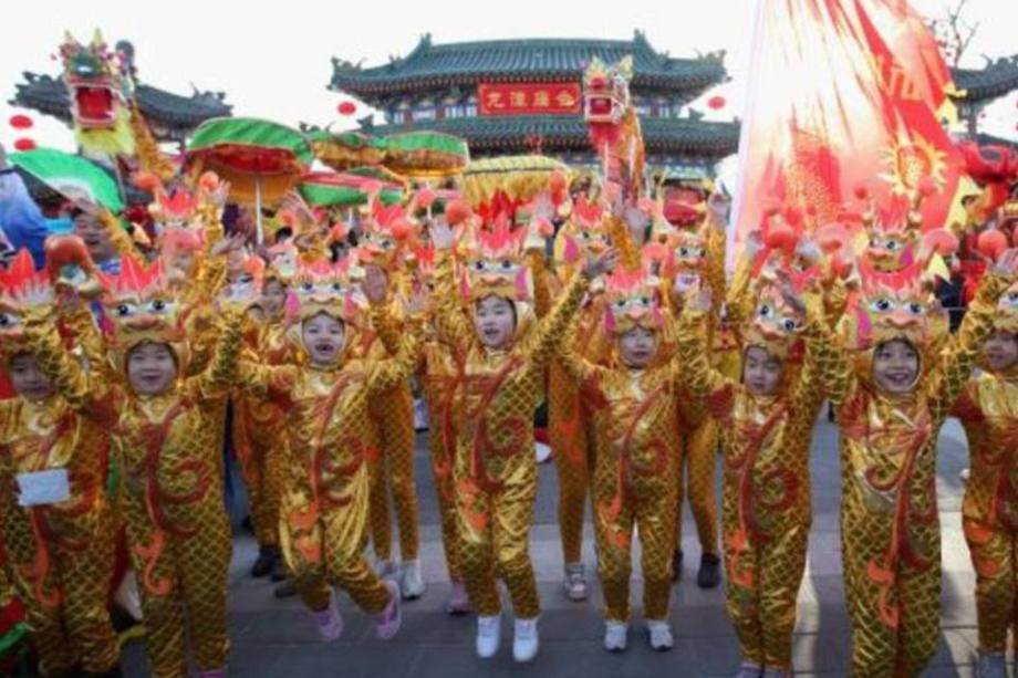 2. Em Pequim, dançarinos fizeram danças folclóricas em homenagem ao dragão