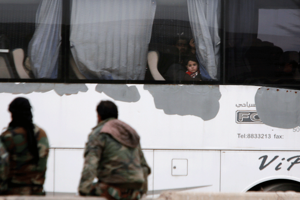 Síria: devastados pelo Exército sírio, que conta com o apoio da Rússia, os rebeldes de Ghouta Oriental estão partindo em comboios (Omar Sanadiki/Reuters)