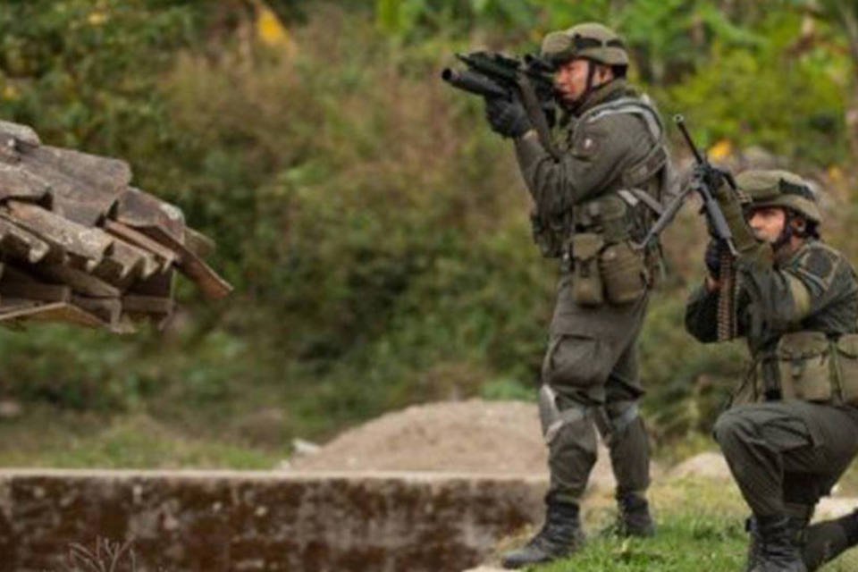 Soldados combatem guerrilheiros das Farc: a guerrilha critica o projeto de emenda constitucional que visa reformar o privilégio penal militar da Colômbia (Luis Robayo/AFP)