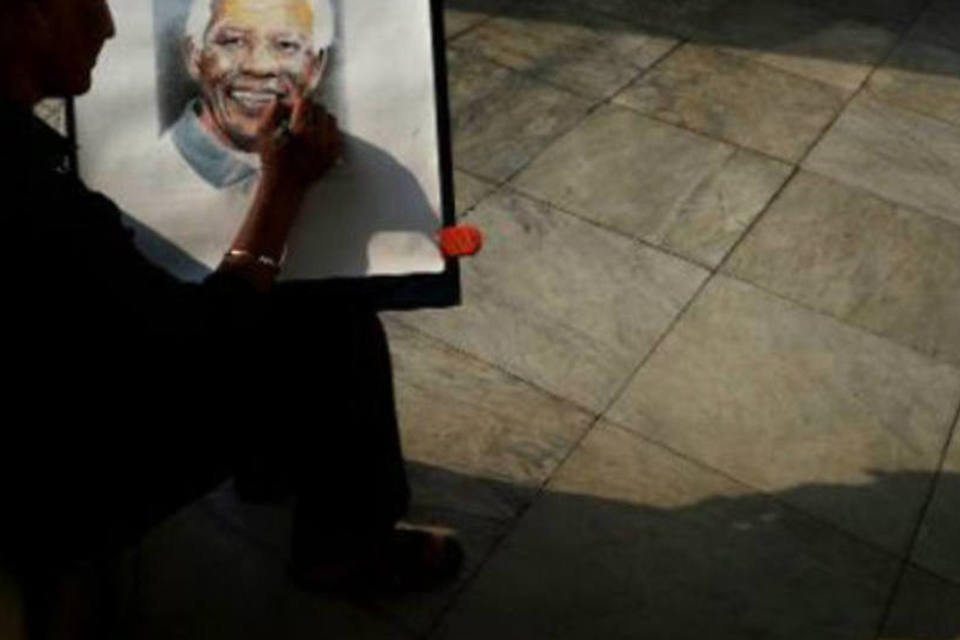 Artista desenha um retrato de Mandela: gravações originais conservam a memória do processo de Rivonia, realizado entre outubro de 1963 e junho de 1964 (Dibyangshu Sarkar/AFP)