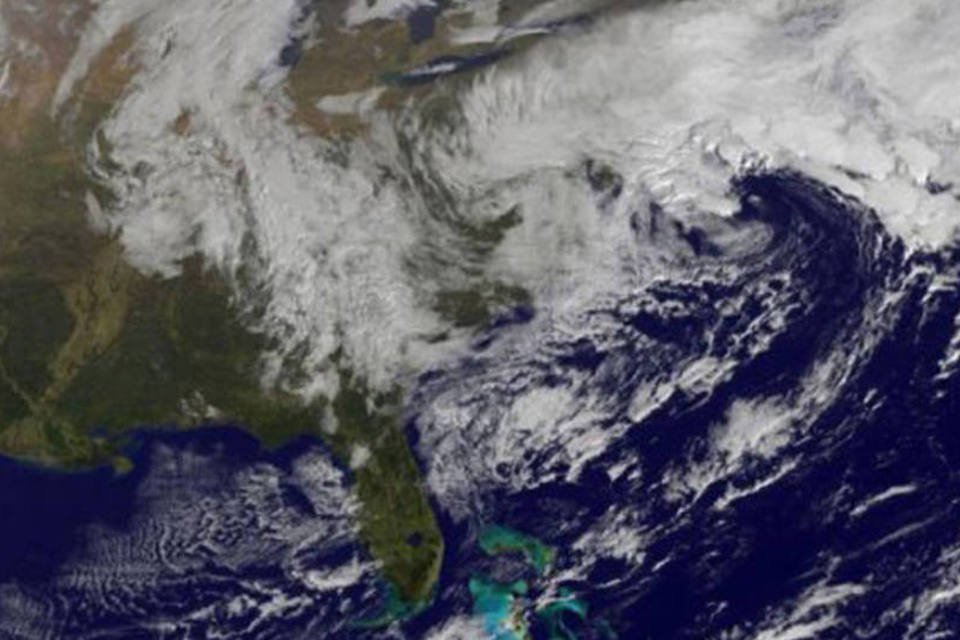 Imagem divulgada pela NASA em 7 de novembro mostra uma nova tempestade se formando na costa leste dos Estados Unidos (AFP)