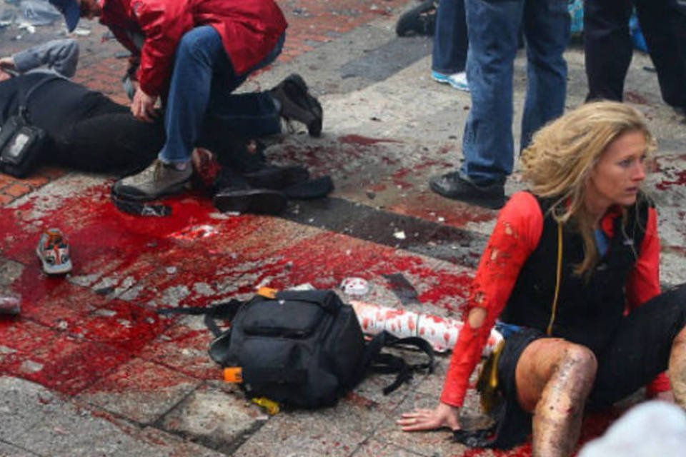 Vítimas de atentado à bomba durante a Maratona de Boston, nos Estados Unidos (John Tlumacki/The Boston Globe/Getty Images)