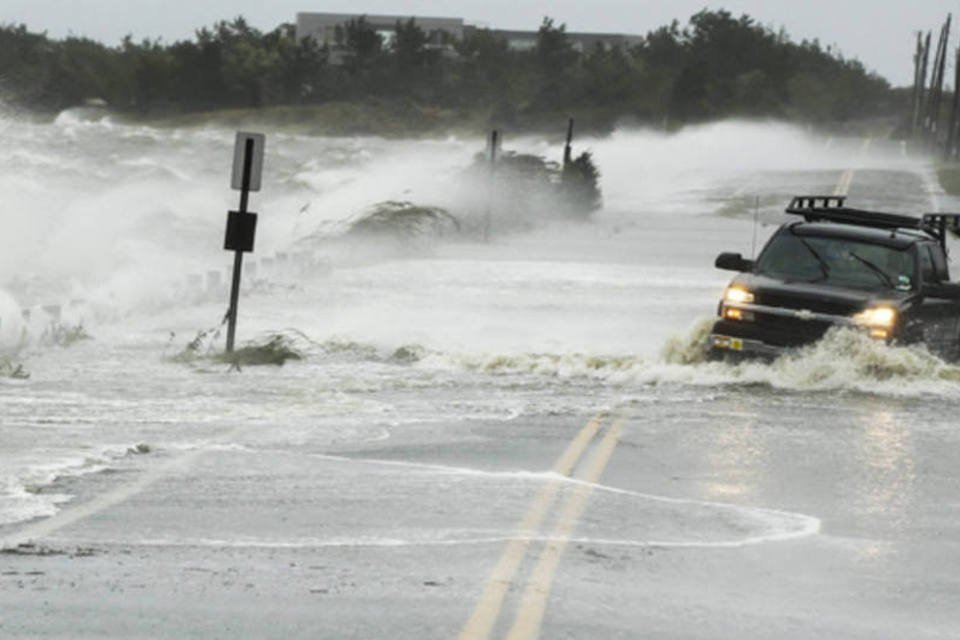 Carro derrapa em pista alagada por conta de tempestade na passagem do Furacão Sandy (REUTERS)