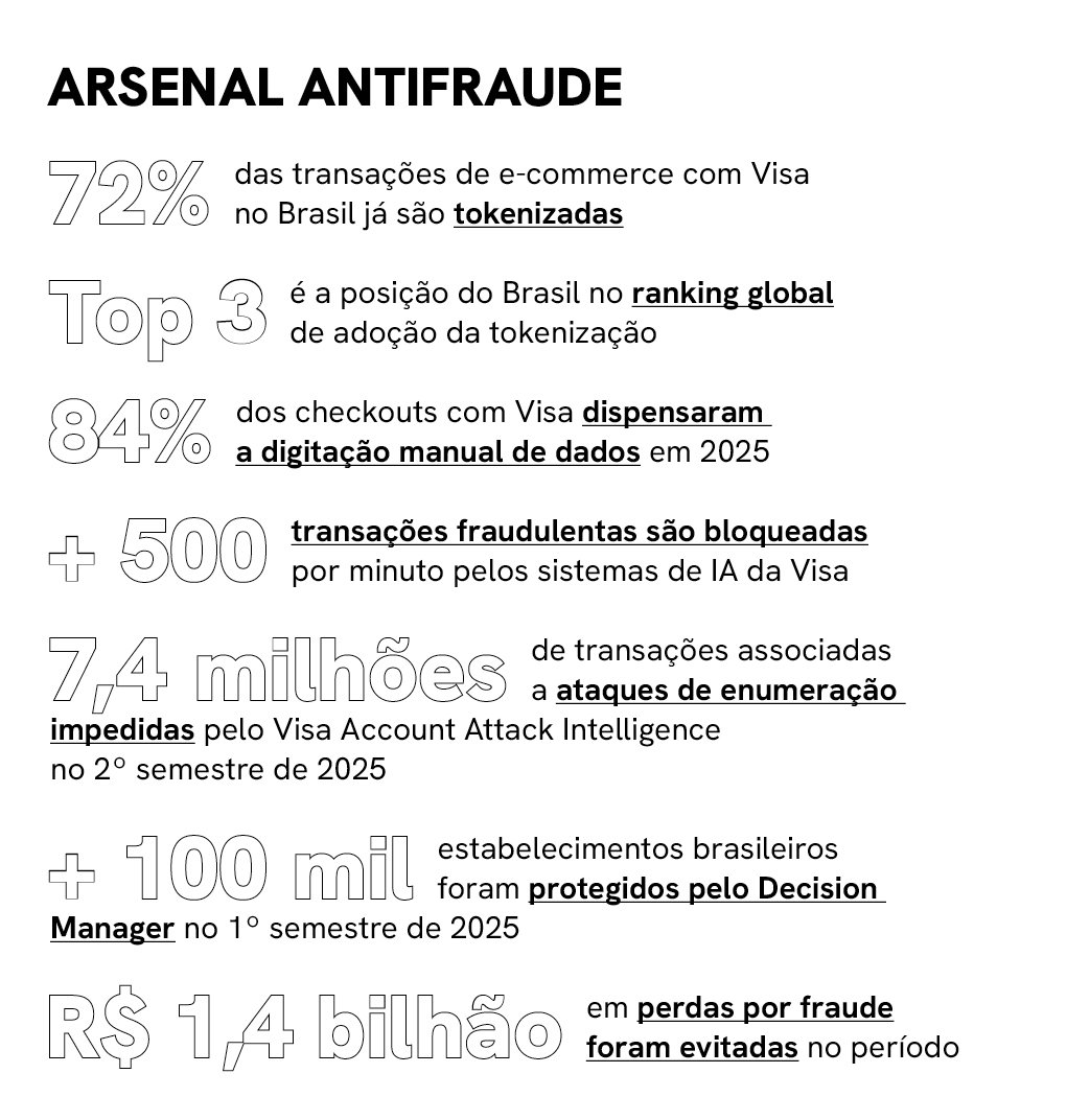 Um exemplo é o Visa Account Attack Intelligence (VAAI), solução que identifica sinais de tentativa de fraude e interrompe ataques antes que se convertam em perdas financeiras. A tecnologia atua especialmente contra ataques de enumeração, quando criminosos testam combinações de dados de cartões até encontrar credenciais válidas. Só entre julho e dezembro de 2025, o mecanismo ajudou a impedir 7,4 milhões de transações associadas a esse tipo de ameaça, evitando US$ 17,7 milhões em perdas.