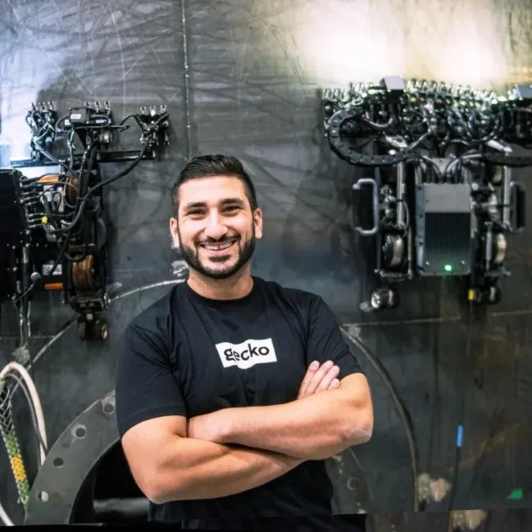 A trajetória da Gecko Robotics começou em 2012, quando Loosararian e seus colegas de engenharia elétrica foram desafiados a construir robôs capazes de escalar e inspecionar as paredes de usinas elétricas em busca de falhas estruturais.