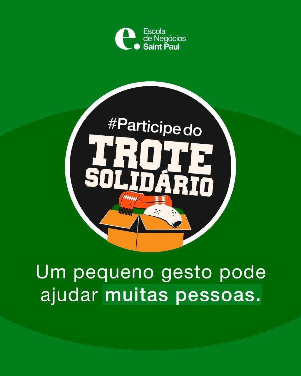Os estudantes do curso de Administração da Escola de Negócios Saint Paul iniciam o ano letivo de 2026 com uma proposta diferente para o tradicional trote universitário. Em vez de brincadeiras ou desafios, a recepção aos calouros acontece por meio de uma ação social: o Trote Solidário, que arrecada roupas e sapatos para doação a instituições da capital paulista.