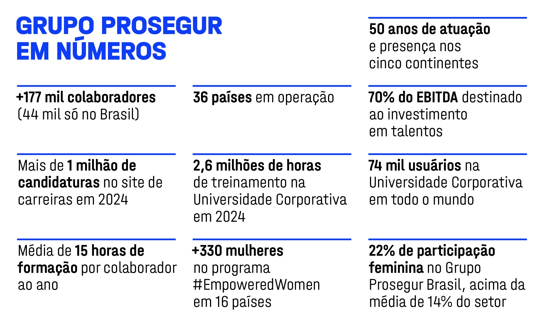 “Temos orgulho em investir mais de 70% do nosso EBITDA em talentos, o que representa muito bem o quanto ‘as pessoas são importantes para nós’, um dos valores da companhia”, afirma Nelson Dourado, diretor de Recursos Humanos do Grupo Prosegur no Brasil. Segundo ele, o interesse por oportunidades na empresa também cresce — foram mais de 1 milhão de candidaturas no site de carreiras em 2024.