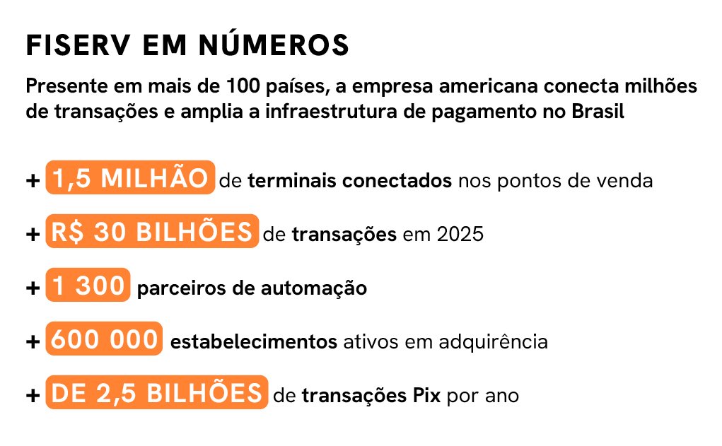 Com presença em mais de 100 países, a Fiserv atua exatamente nessa camada. No Brasil, a companhia conecta mais de 1,5 milhão de terminais, atende cerca de 600 mil estabelecimentos em adquirência e processa bilhões de transações por ano, apoiada por uma rede com mais de 1.300 parceiros de automação e milhares de soluções integradas.