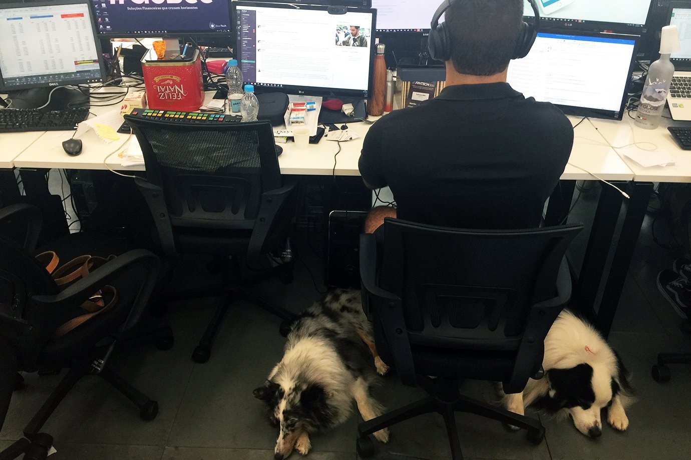 Na BeeTech, empresa de soluções cambiais online, funcionários podem levar os cachorros para trabalhar com eles.