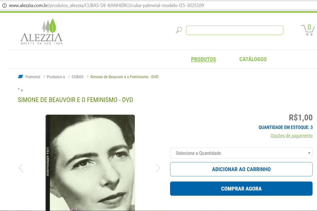 O grupo também havia excluído produtos da loja virtual da Alezzia e os substituído por um DVD sobre a escritora feminista Simone de Beauvoir. Confira a imagem de reprodução: