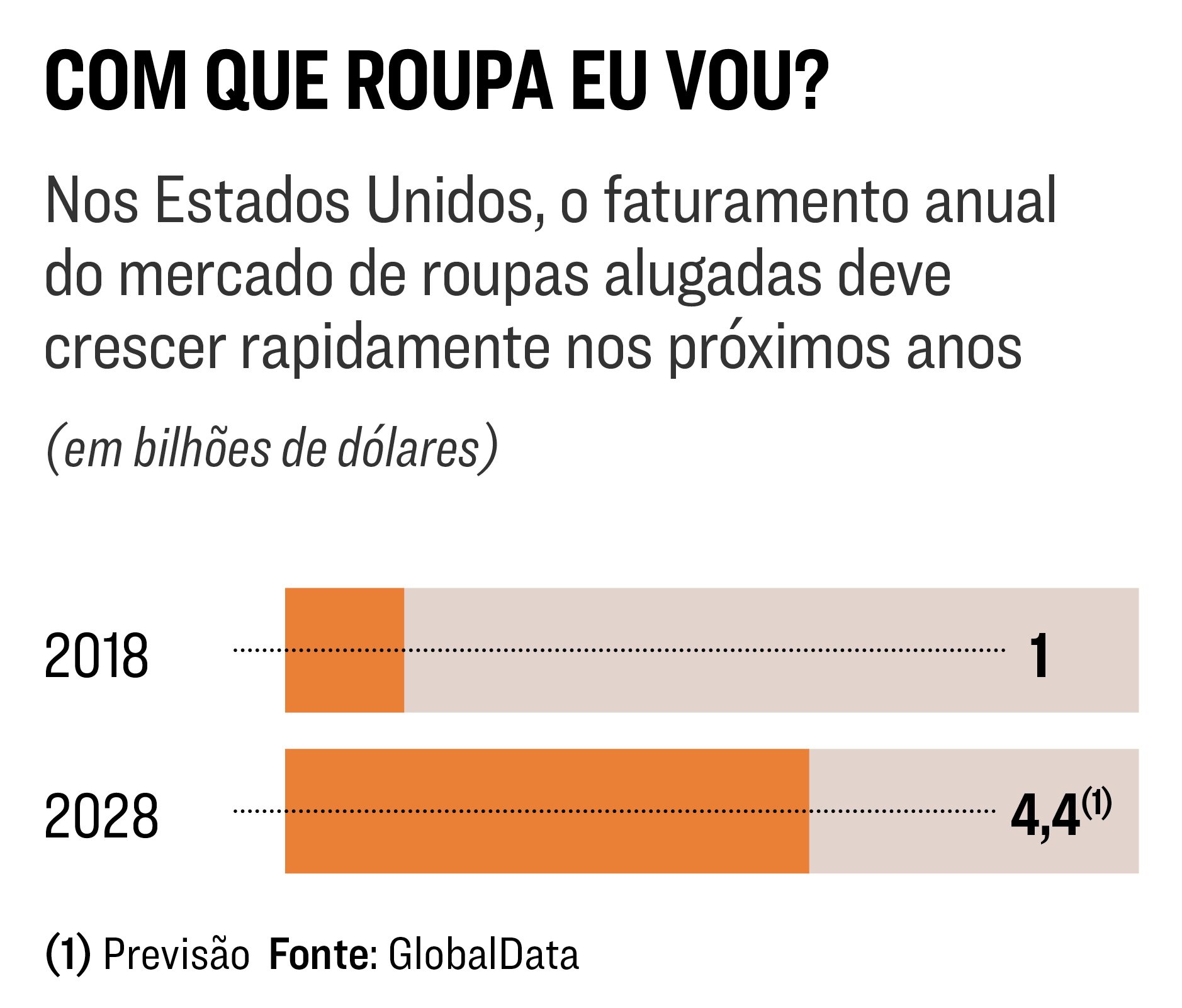 O aluguel de roupas já existe no mundo físico há muito tempo. O que se vê agora é a proliferação de novas empresas com a oferta de aluguel pela internet. E, de modo inédito, a entrada das principais companhias especializadas no segmento de fast fashion para esse nicho. Elas acompanham o avanço dos consumidores nessa direção. Segundo a consultoria de consumo GlobalData, as receitas do mercado de aluguel de roupas deverão mais que quadruplicar na próxima década nos Estados Unidos — ao chegar a 4 bilhões de dólares (veja quadro ao lado).