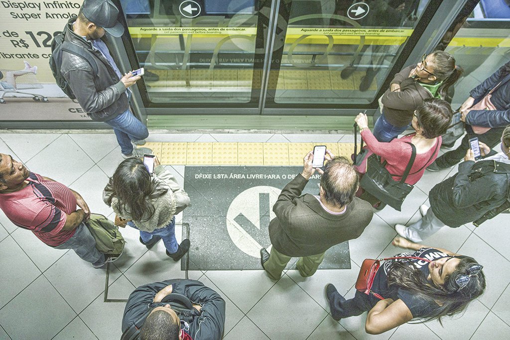 Pessoas com celular no metrô: com o mundo mais conectado, a digitalização deixou de ser opcional (Danilo Verpa/Folhapress)