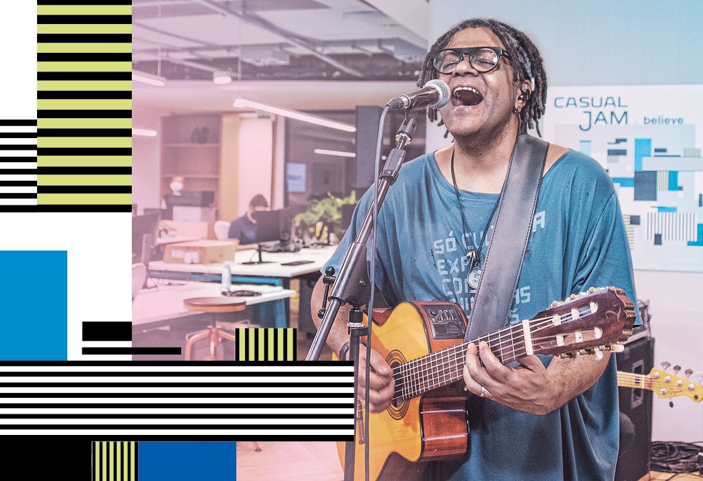 O escritório da EXAME, convém registrar, é frequentado atualmente por um número reduzido de funcionários — a maioria da equipe se mantém em regime de trabalho remoto todo mundo sabe por quê. Foram poucos, portanto, os que puderam testemunhar as performances de Paula e Moura. Todos os shows do projeto Casual Jam, no entanto, são gravados e posteriormente veiculados em nosso canal no YouTube e em nossa conta do Instagram — a próxima atração é o Lobão, cujo show está previsto para janeiro.