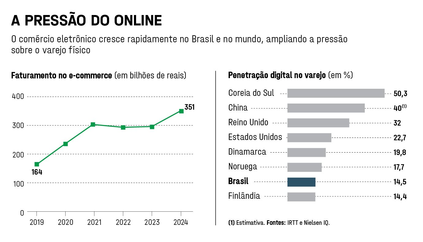 Erguer uma muralha estadual, porém, não garante imunidade. O varejo regional enfrenta um adversário de escala global: o comércio eletrônico. No Brasil, o faturamento do setor cresceu 19% de 2023 para 2024, levando o volume bruto de vendas a cerca de 351 bilhões de reais, de acordo com levantamento da Nielsen e da consultoria Varese Retail. O Mercado Livre sozinho respondeu por aproximadamente 138 bilhões de reais em vendas no país. O Magazine Luiza somou cerca de 46 bilhões, enquanto a asiática Shopee já movimenta algo próximo de 40 bilhões. No mundo, a corrida é ainda mais intensa. A Ásia domina o comércio eletrônico global, com receitas superiores a 1,5 trilhão de dólares, puxadas principalmente pela China, onde o varejo online ultrapassou a marca de 1 trilhão de dólares. A digitalização do varejo também avança rapidamente. Na Coreia do Sul, metade de todas as vendas já acontece online. Nos Estados Unidos, chega a 22,7%. No Brasil, ainda está em 14,5%, mas cresce ano após ano. Se o país seguir a trajetória de mercados asiáticos, a pressão sobre o varejo físico tende a aumentar. E os gigantes digitais não economizam recursos para acelerar essa transformação. Apenas em 2024, o Mercado Livre investiu 23 bilhões de reais em infraestrutura logística no Brasil, incluindo novos centros de distribuição no Sul. Um deles fica em Governador Celso Ramos, a 20 quilômetros da sede da Koerich, em Biguaçu. O objetivo é garantir entregas no mesmo dia ou no dia seguinte e capturar as categorias de giro mais rápido, como smartphones, notebooks e eletroportáteis. Isso também ajuda na questão tributária. Com operações locais, os gigantes se adaptam à complexidade de impostos de cada estado, e com investimentos bilionários têm barganha para negociar tratamentos tributários diferenciados. Para redes regionais como a Koerich, sobreviver nesse cenário exige apostar justamente naquilo que os gigantes digitais ainda têm dificuldade de replicar: relacionamento, proximidade e crédito. Em outras palavras, o velho carnê.