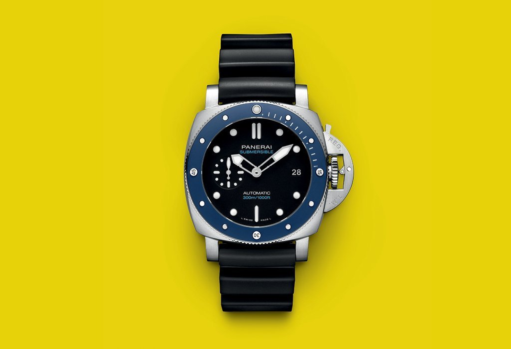 A Panerai possui legitimidade para fazer instrumentos de mergulho. Fundada em Florença em 1860, a marca por muitas décadas foi a fornecedora da Marinha Italiana com instrumentos de alta precisão. Em 1997, foi adquirida pelo grupo Richemont. Seu mais recente lançamento, o Azzurro, está disponível apenas para venda online. No Brasil, o modelo chega pelo preço de 49.100 reais e em um novo momento da marca por aqui: a recente abertura de um e-commerce próprio, o officinepanerai.com.br.