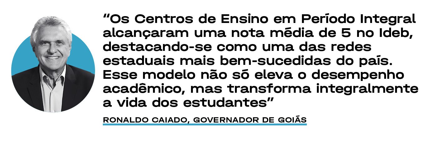 “O modelo de escolas de tempo integral busca garantir o desenvolvimento pleno dos alunos em suas dimensões intelectual, física, emocional, social e cultural, com foco na formação crítica, autônoma e responsável do estudante. Uma escola de tempo integral traz espírito de aprendizagem, oportuniza ao aluno poder decidir seu projeto de vida”, diz Fátima Gavioli, secretária da Educação do estado de Goiás.