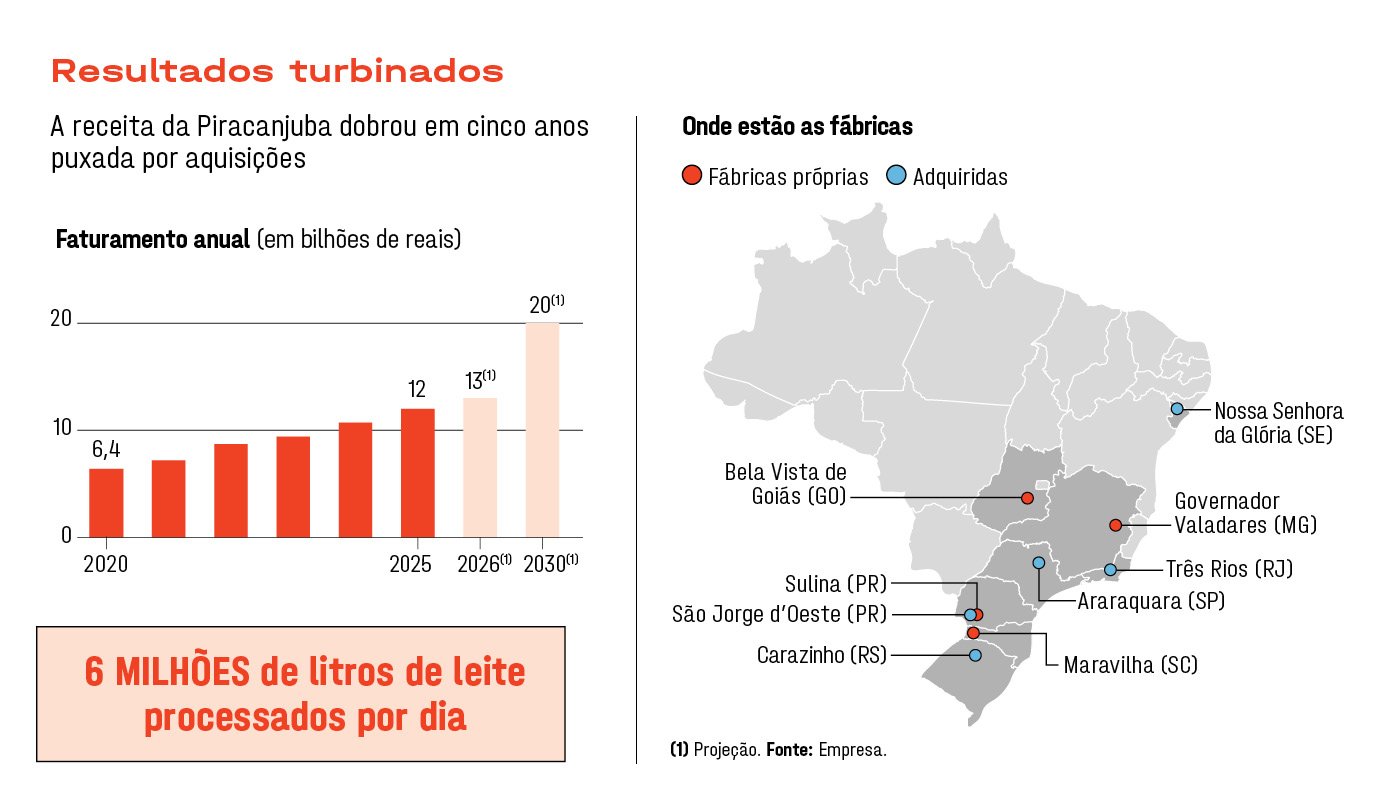 Fundada em 1955 como uma indústria de manteiga, bancada por um pequeno produtor rural, e batizada com o nome da cidade natal, a 80 quilômetros de Goiânia, a Piracanjuba virou um gigante de 12 bilhões de reais de faturamento em 2025. Hoje é a segunda maior indústria de laticínios do país em vendas — só perde para a Lactalis, dona das marcas Parmalat, Itambé, Batavo, entre outras, e uma receita anual acima de 17 bilhões de reais. O negócio ganhou corpo a partir dos anos 1970, quando a família -Helou assumiu a operação. Com a morte do contador com ascendência libanesa Saladi Helou, os irmãos Cesar e Marcos Helou assumiram o comando em 1985, e a empresa passou a beneficiar também o leite de bacias no Centro-Oeste e, a partir dos anos 2000, de outras regiões do país. A operação nacional de fato veio na virada dos anos 2020 com a aquisição de fábricas de concorrentes em territórios muito distantes da matriz, no interior goiano. No bolo de compras estavam três fábricas da Nestlé em São Paulo, Rio Grande do Sul e Rio de Janeiro. “A aquisição delas deu uma robustez muito grande para a empresa”, diz Lorenzo.