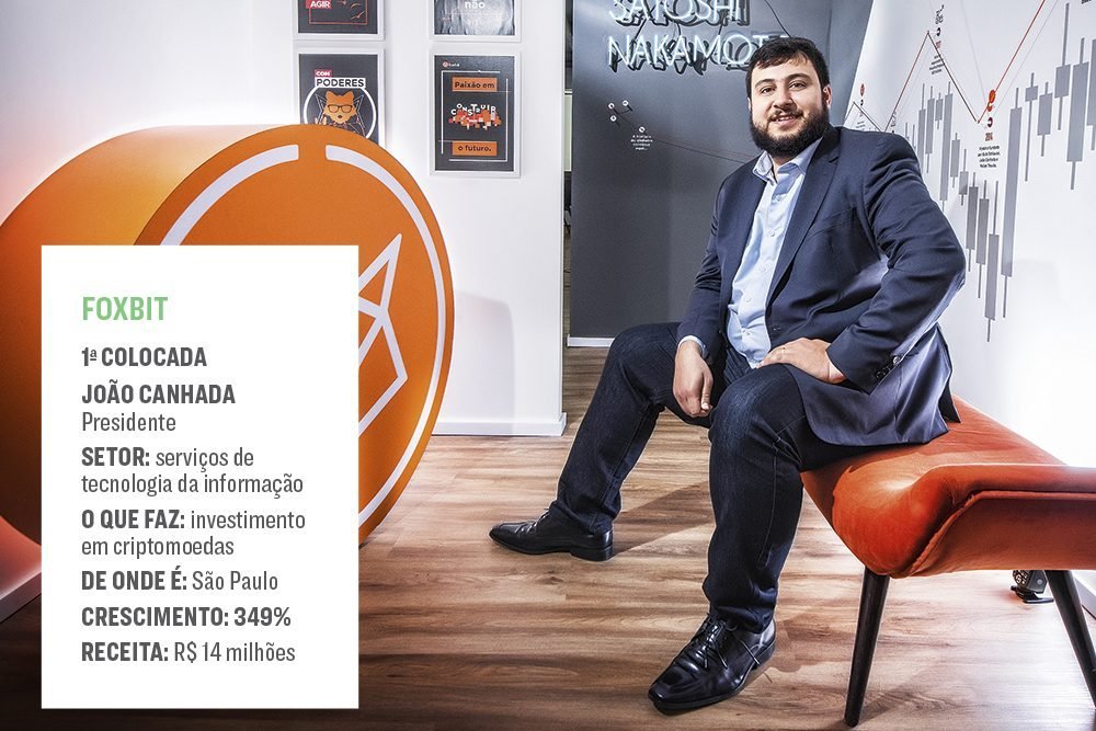 A criação de novos produtos e serviços foi a área que mais contribuiu para a expansão, e o investimento constante em tecnologia foi a iniciativa mais adotada pelas campeãs de crescimento. A primeira colocada mostra que, enquanto o PIB chafurda, há uma infinidade de nichos promissores para ser atacados. Poucos geram tanto barulho quanto o de criptomoedas, mercado em que atua a campeã do ranking. A gestora paulista de investimentos em criptomoedas Foxbit foi criada em 2014, quando pouco se falava em moedas virtuais.