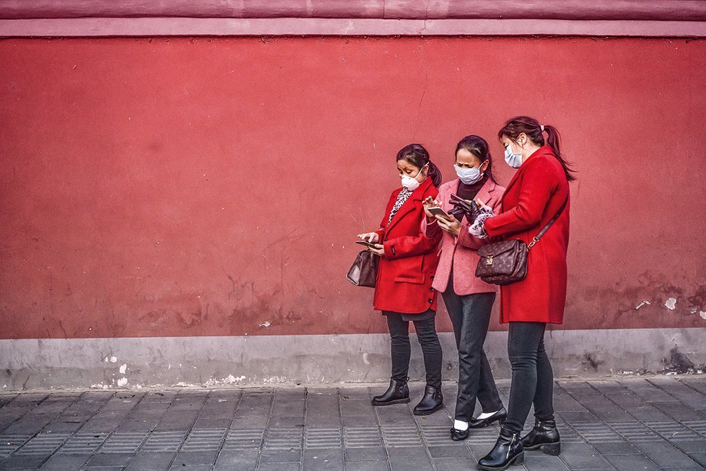 Pessoas usando smartphones na China: a tecnologia 5G impulsiona a conectividade nos negócios (Kevin Frayer/Getty Images)