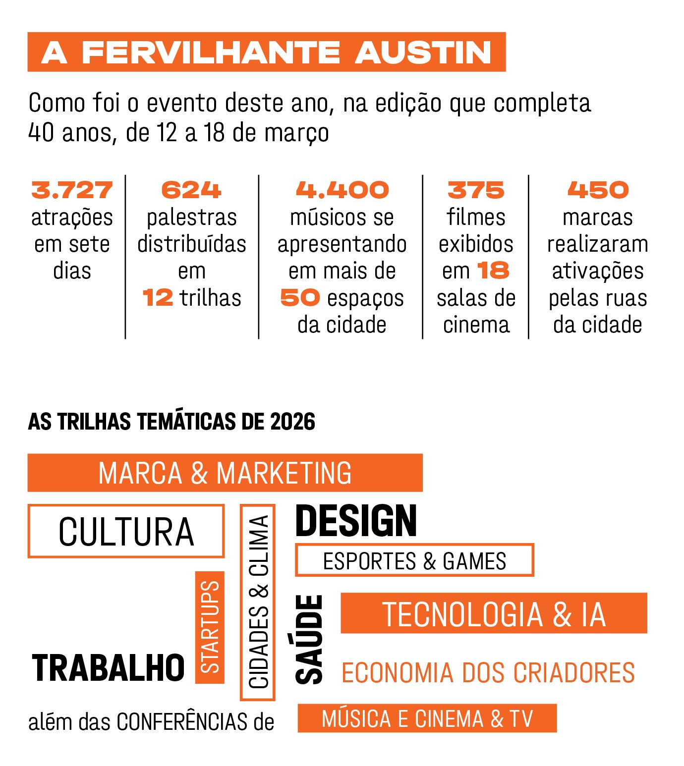 O SXSW nasceu de uma pergunta simples: o que acontece quando você coloca música, tecnologia e cultura na mesma sala? Começava ali o evento, nos anos 1980, por quatro noites, com alguns talks e 177 bandas espalhadas por 15 bares em Austin, no Texas. Ninguém, nem mesmo seus mais otimistas criadores, imaginaria a dimensão que o evento tomaria em 2026: 3.700 atrações em sete dias, delegações de mais de 40 países, o lugar onde o mercado vem ler o futuro antes de ele virar notícia.