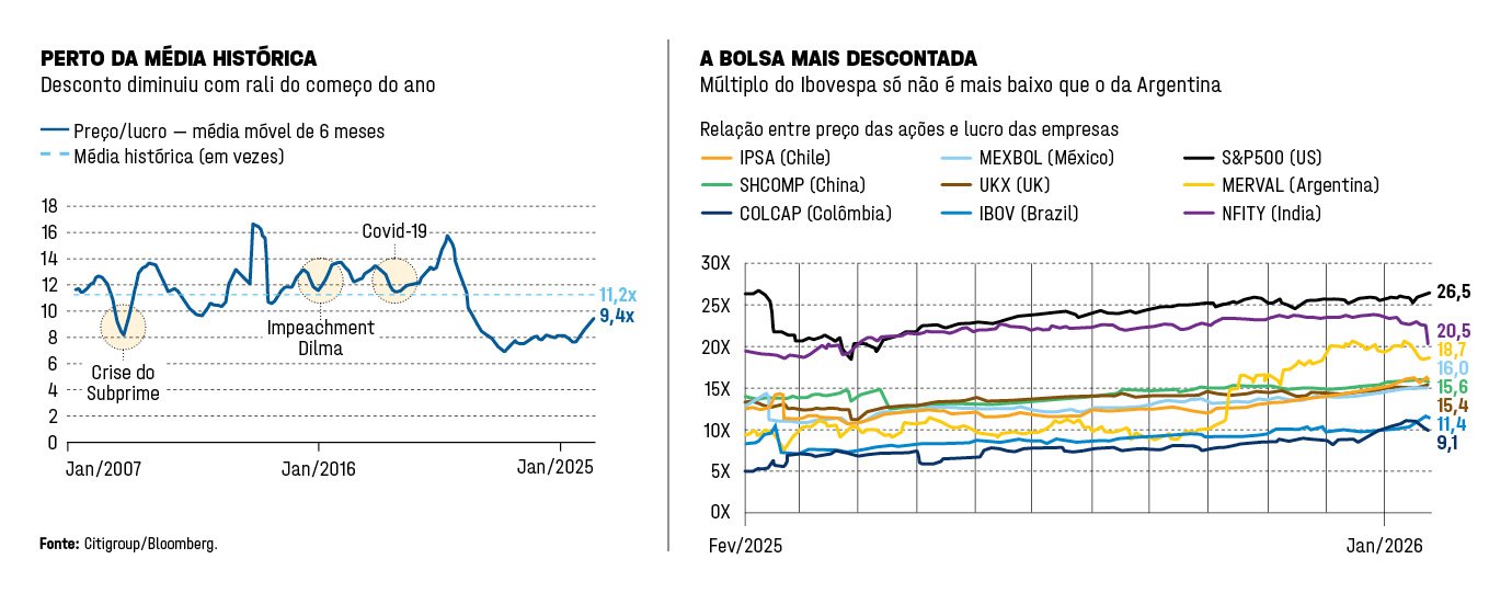 “Essa rentabilidade da bolsa não tem a ver com a economia real do dia a dia, com os resultados das empresas. É coisa de fluxo, mecânico. Inclusive, há empresas que continuam em uma situação bastante complexa. Muitas fizeram aumento de capital para conseguir se reestruturar”, afirma André Lion, sócio e gestor da estratégia de ações da Ibiuna Investimentos. Para ele, o Brasil vai começar a ser visto com olhar diferenciado a partir do momento em que reduzir os juros. Como demorou mais do que os pares para começar a diminuir a taxa, o país vai protagonizar, praticamente sozinho, um ciclo de alívio monetário em 2026. “Aí, sim, a gente deve ver o Brasil se desconectando um pouco desse ‘bolão’ e, provavelmente, performando um pouco melhor do que a média”, diz o gestor.