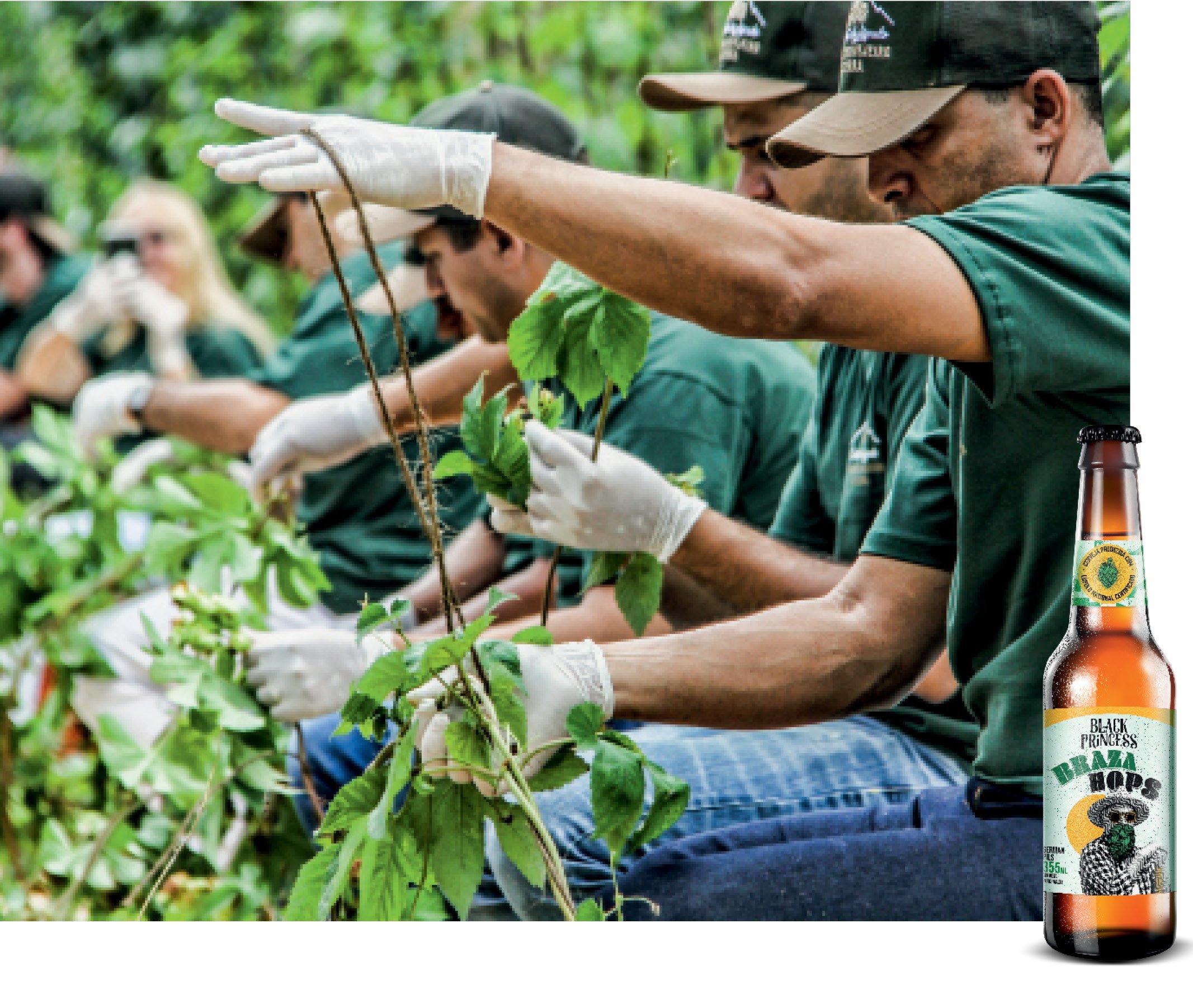 Colheita de lúpulo do grupo Petrópolis e garrafa de Braza Hops: lote de 2.000 long necks (Divulgação/Divulgação)
