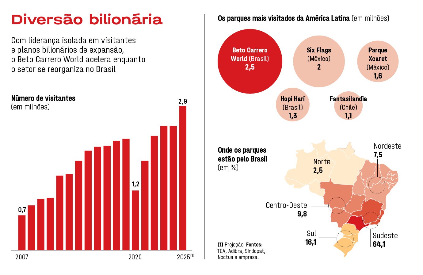 No último ano, o parque registrou receitas próximas de 660 milhões de reais, alta de 14% em relação a 2024. Pelo quinto ano consecutivo, liderou o ranking de parques temáticos mais visitados da América Latina, com 2,5 milhões de visitantes, à frente do mexicano Six Flags. No próximo balanço, esse número deverá avançar para 2,9 milhões.