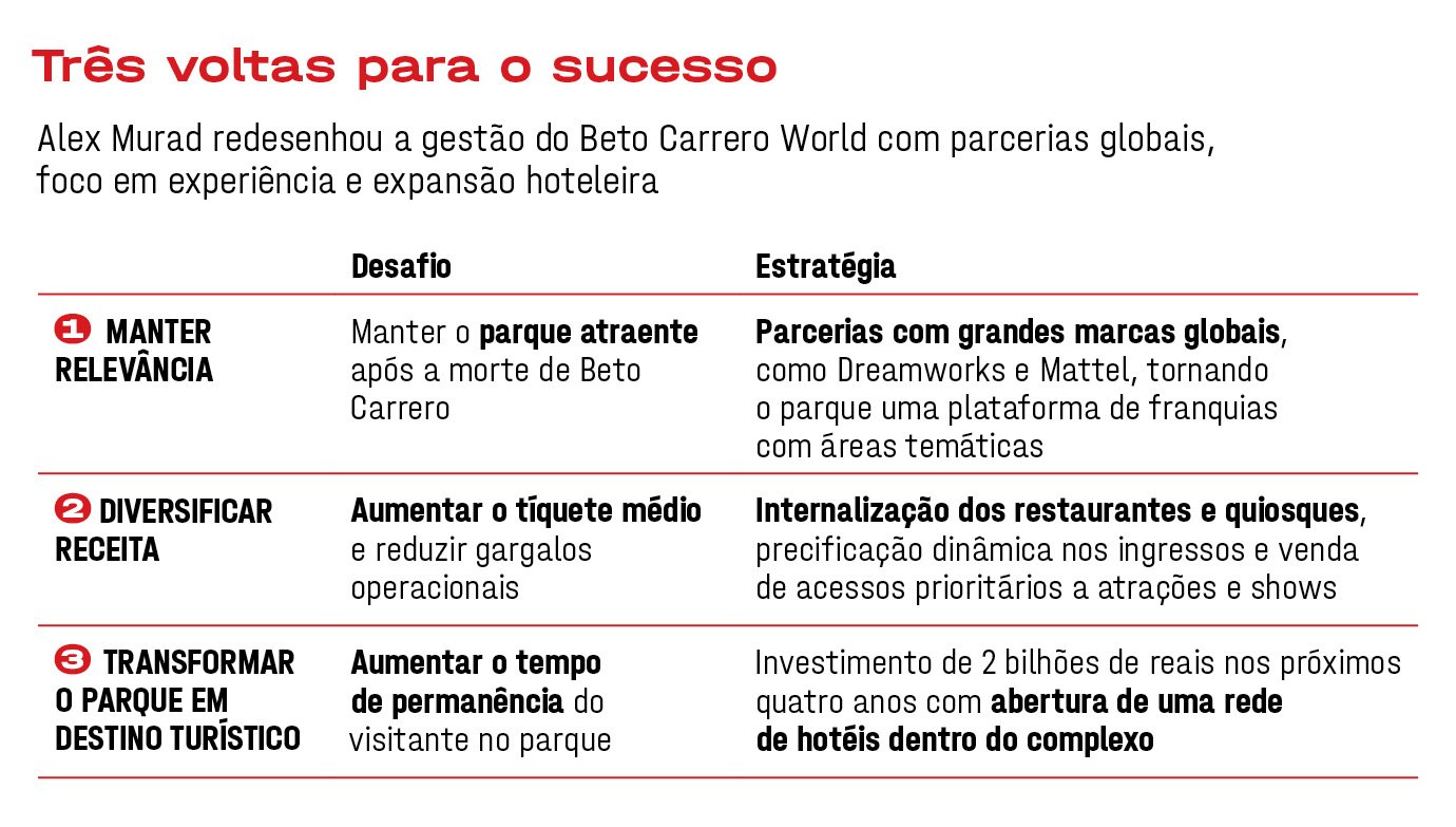 Os olhos desse mar de gente estão ocupados demais com personagens infantis, montanhas-russas e um elevador de queda livre de 100 metros para notar quem passa. O homem despercebido na multidão é, na verdade, o responsável por boa parte das novas atrações por ali. Alexandre Murad comanda o parque temático desde a morte do pai, João Batista Sérgio Murad — o Beto Carrero —, em 2008.