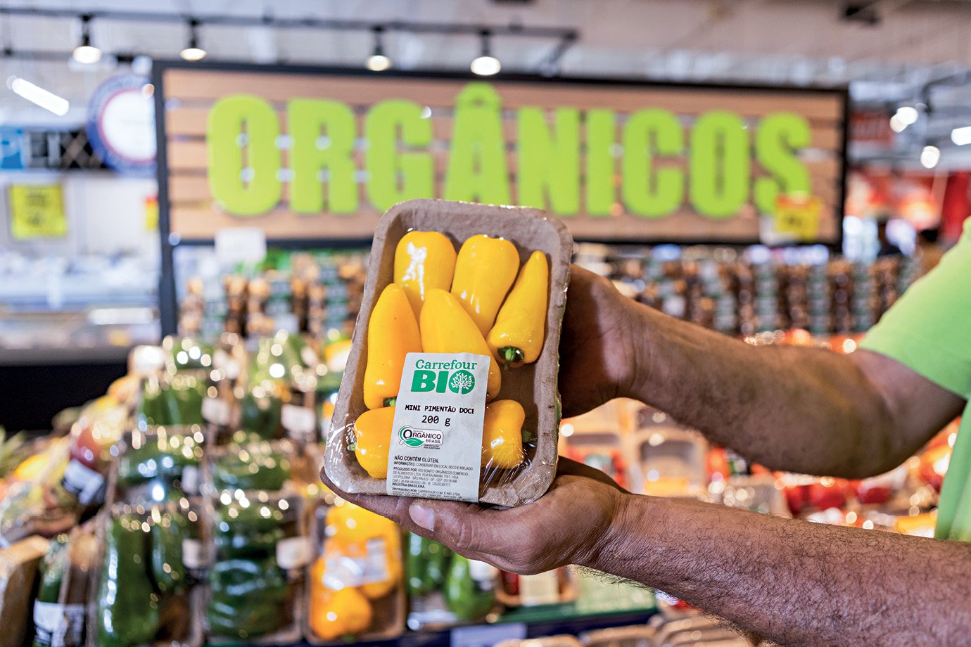 Produtos orgânicos nas prateleiras: incentivo à produção e ao consumo responsável faz parte da estratégia de transição alimentar do Grupo Carrefour Brasil (Carrefour/Divulgação)