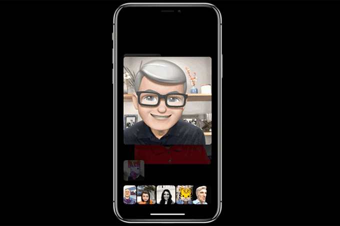 Videochamadas em grupo – Recurso de videochamadas entre iPhones, iPads e Macs, o Facetime ganhou suporte para conversar em grupo. Até 32 pessoas podem participar de uma mesma conversa. As imagens das pessoas ficam divididas na tela do dispositivo. Quando uma pessoa fala, sua imagem fica automaticamente maior. Os efeitos animados em tempo real dos Memojis acontecem durante as conversas, caso sejam ativados pelos usuários. As videochamadas são gratuitas, mas só podem acontecer entre aparelhos da Apple.