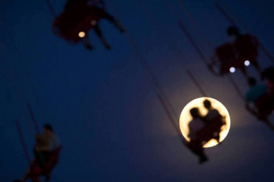Localizada no Brooklyn, Nova York, Coney Island é conhecida por contar com vários parques de diversões. Nsta imagem, a superlua está iluminando pessoas no Luna Park, um dos parques locais.